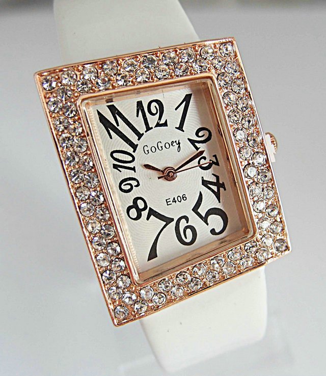 G437 Rhinestone White Band Watch 59.99